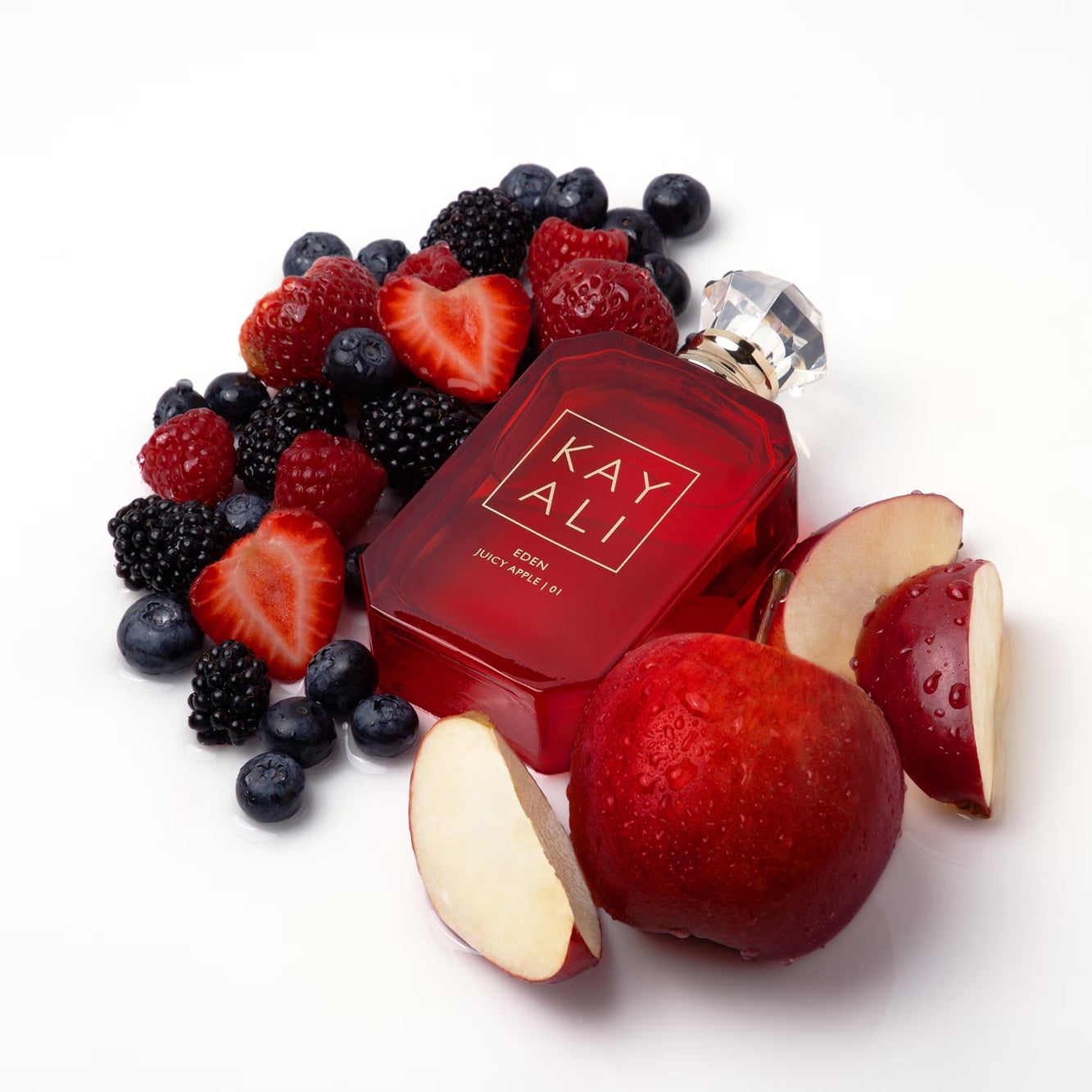 Vibrant and playful, KAYALI Eden Juicy Apple | 01 Eau de Parfum is a delicious scent that boasts a mouthwatering fusion of crisp and juicy red apples, sweet berries, and fresh floral notes that will keep you wanting more and more!
