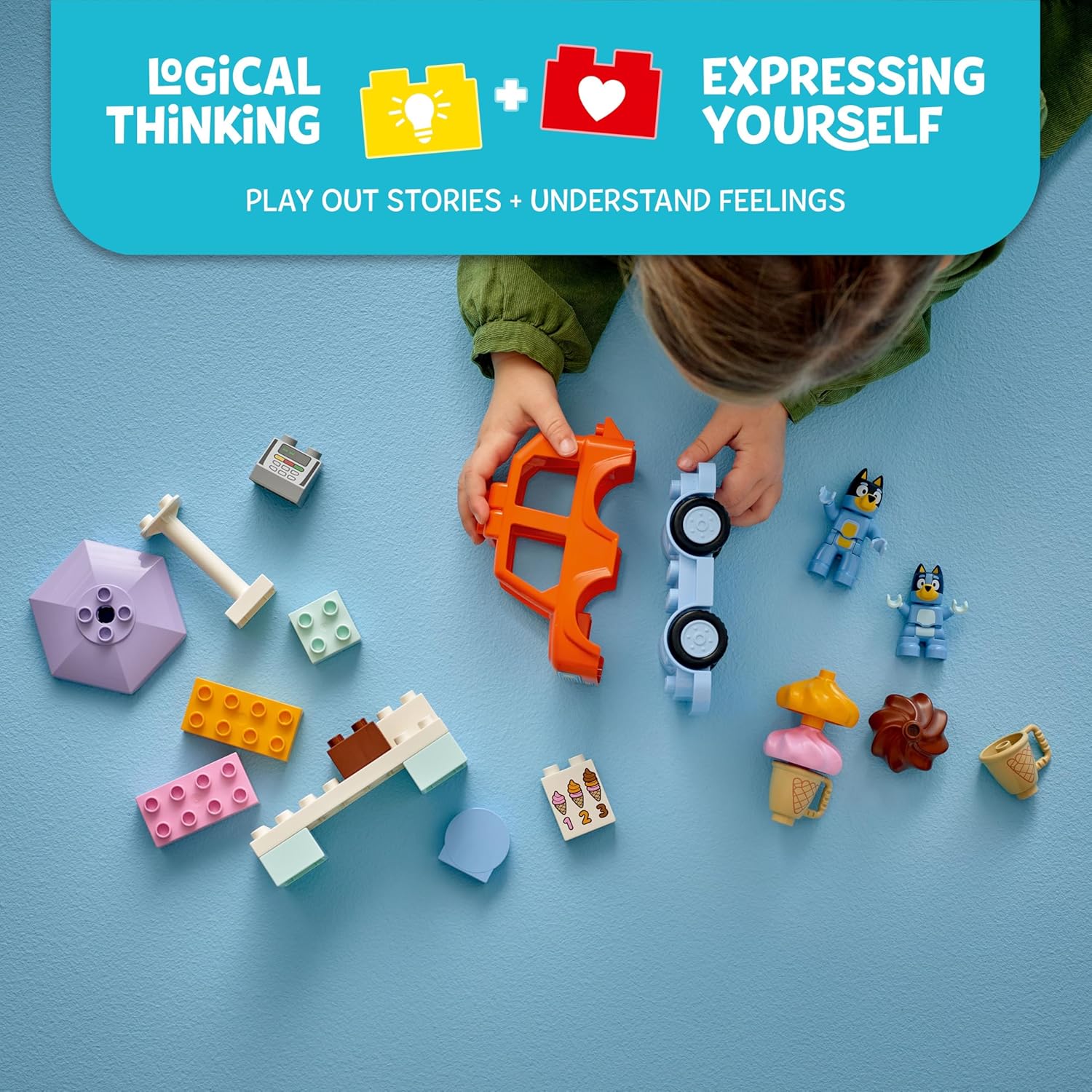 Immerse preschoolers in role‑play fun with the LEGO DUPLO Bluey Ice Cream Trip with Bluey toddler toy for 2+ year old girls and boys (10458). Preschoolers enjoy imaginative play as they go on a LEGO DUPLO adventure using this toy car playset to recreate scenes from the Bluey TV show.