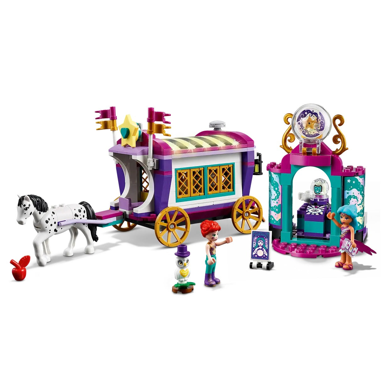 هل تبحث عن هدية لطفل يحب المركبات الغريبة؟ أسعده بمجموعة LEGO® Friends Magical Caravan (41688). تتميز مجموعة الألعاب الرائعة هذه بلعبة قافلة للأطفال وخيمة عرافة ودميتين صغيرتين وشخصيات حصان وبومة.