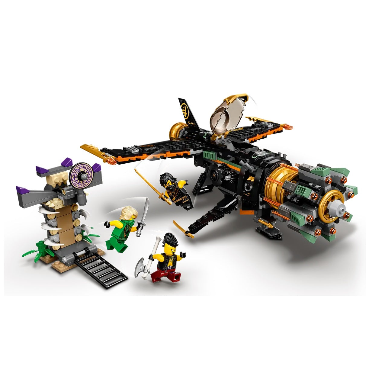 سيشعر عشاق النينجا بسعادة غامرة مع هذا التحديث الحديث لطائرة إطلاق النار Boulder Blaster (71736) لشن معارك مثيرة من الموسم الرابع من مسلسل LEGO® NINJAGO® التلفزيوني. تحتوي لعبة الطائرة على 8 قاذفات محملة بنابض على مقدمتها الدوارة لتوجيه النيران السريعة إلى Eyezor الشرير أو إلى مبنى السجن لإطلاق سراح Lloyd الأسير.