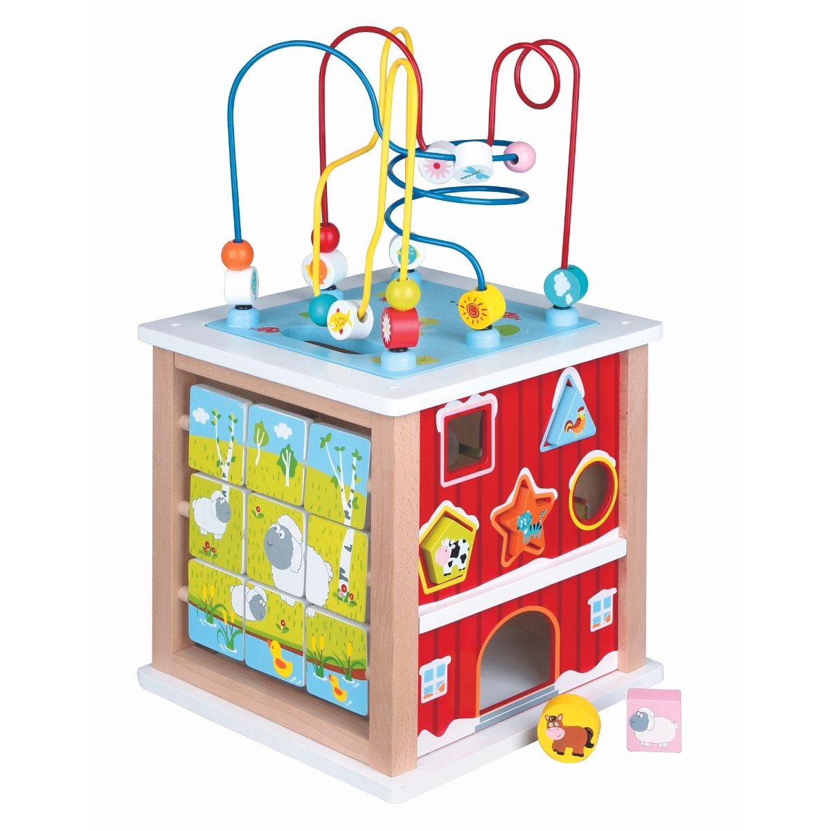 يحتوي المكعب على جوانب متعددة، كل جانب يتميز بأنشطة وألعاب مختلفة ذات طابع مزرعة. تتضمن هذه الأنشطة متاهة الخرز، وفرز الأشكال، ومتاهة الكتل، وقلب الكتل.