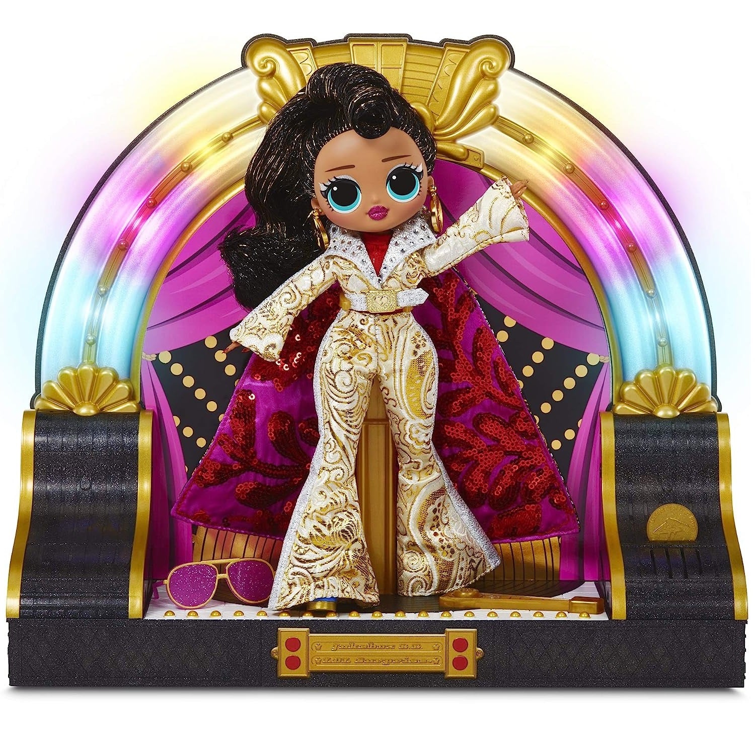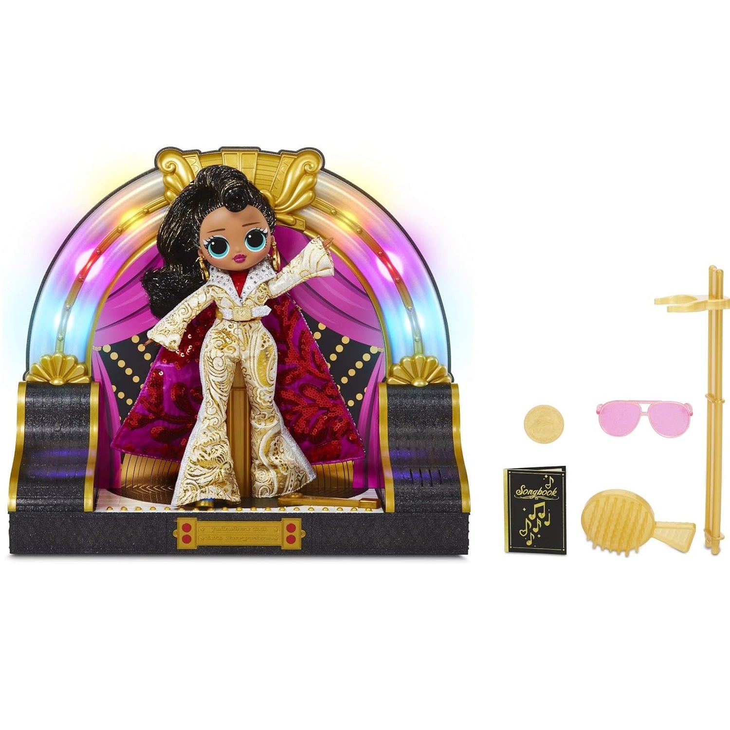 LIGHT-UP STAGE PLAYS MUSIC - Display Jukebox B.B. on her incredible light-up jukebox stage, Insert the token, and the stage plays music, It plays Jukebox B.B.'s rock 'n' roll piece of a surprise song