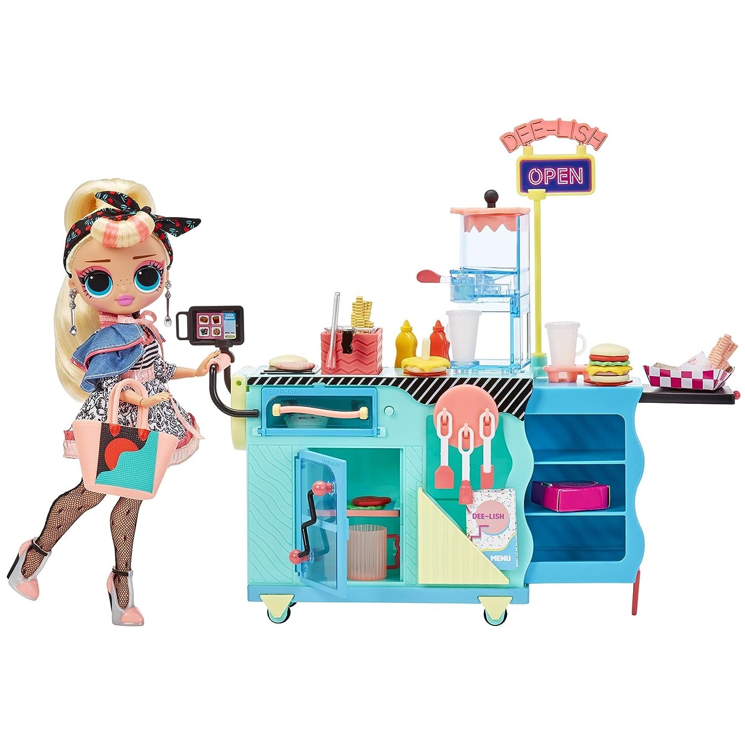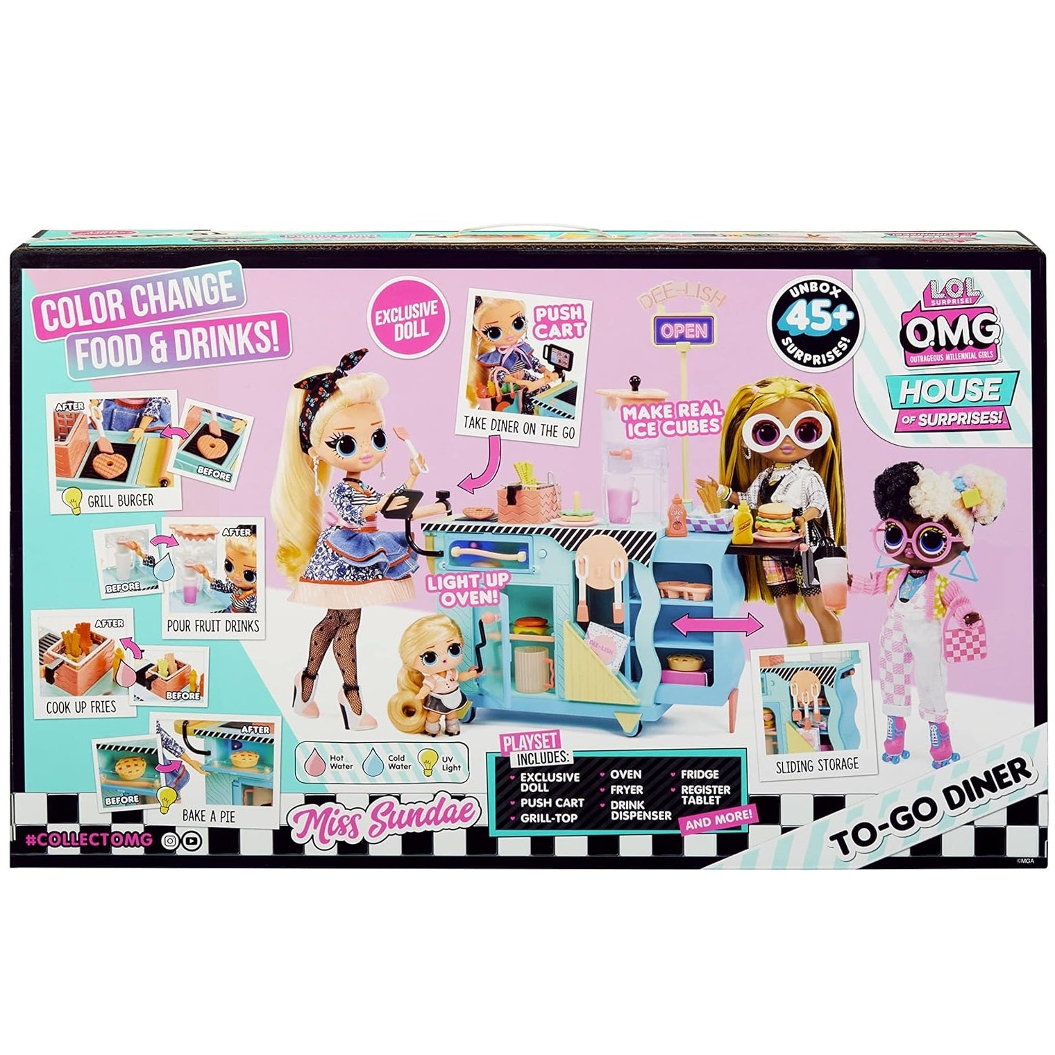 Check out the first O.M.G. Playset; To-Go Diner; Unbox 45 surprises; including an exclusive doll and color change surprises; Discover what delicious adventures await in this all-new play experience