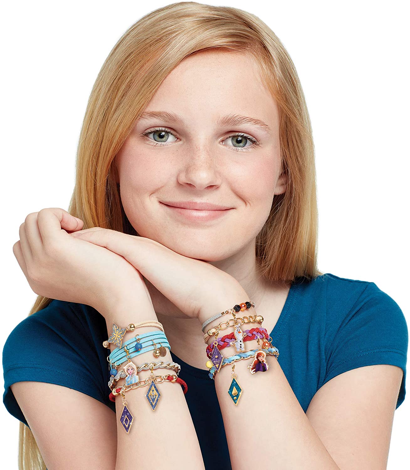 - يمكن للفتيات إنشاء مجوهرات Frozen 2 الأنيقة الخاصة بهن، وصناعة أساور جريئة وجميلة وساحرة سوف يفخرن بعرضها!