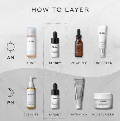 يأتي مصل Medik8 Oxy-R Peptides Serum داخل زجاجتين يتم تنشيطهما بالنقر لضمان فعالية مثالية لفترة أطول، ويساعد على تفتيح مظهر البقع الداكنة والبهتان في 7 أيام فقط*.
