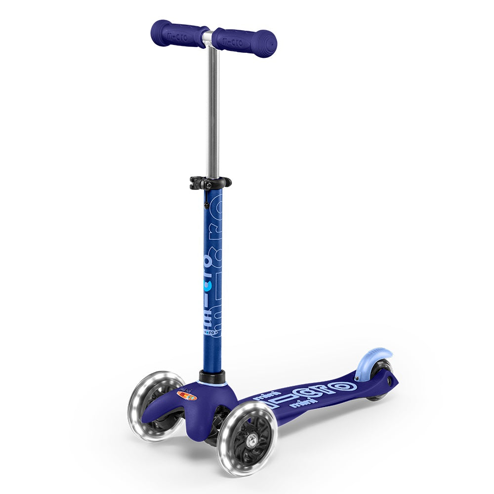 Mini Micro 3in1 Deluxe Plus with radiant LED wheels is a scooter with a trio of talentss. Ride-on scooter with adjustable removable parent steering handle from 12 months. Independent sit on scooter with adjustable seat height for more confident toddlers. To iconic Mini Micro Deluxe with adjustable handlebar and extra grippy footplate from 2 years through to starting school. Always perfectly attuned to your child’s size and physical development. Helping them build confidence along with crucial balance and coordination skills. The only scooter you’ll need from first steps to first days at school.