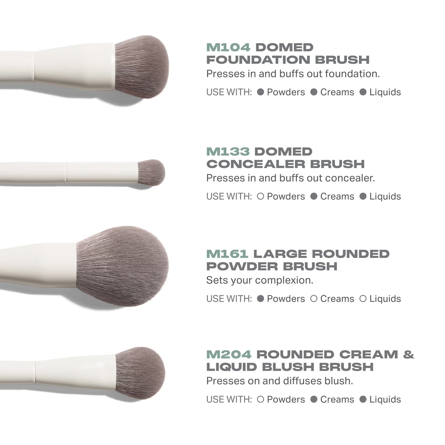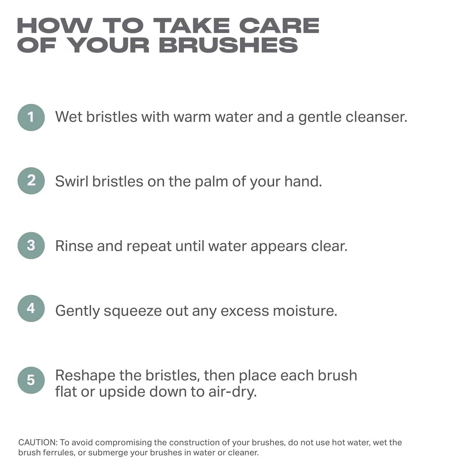 Each treated with silver ion, the pro brush set is expertly engineered to resist shedding and fraying, supporting a seamless, streak-free application each and every time.