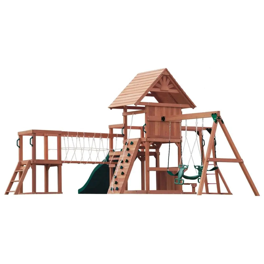 Prepare for the ultimate outdoor play experience with the Double Deck Everest Swing Set & Playhouse! This extraordinary playset stands tall as the largest in our collection, inviting endless adventures and boundless imagination