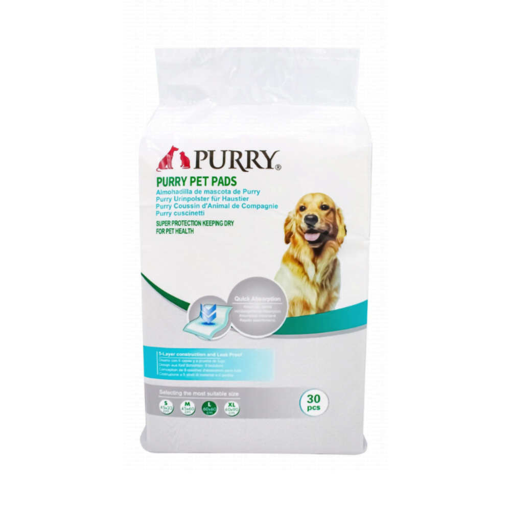 وسادات تدريب الحيوانات الأليفة من Purry هي الحل السريع والسهل لجميع احتياجات تدريب الحيوانات الأليفة! مع 5 طبقات لأقصى قدر من الامتصاص وتصميم مقاوم للتسرب، فإن هذه الوسادات مقاس 60 سم × 60 سم مثالية لتدريب صديقك الفروي على التبول في المنزل. تحتوي كل عبوة على 30 وسادة وتأتي مع ملصق أرضي مريح لسهولة وضعها. حافظ على نظافة أرضياتك وسعادة حيوانك الأليف مع وسادات تدريب الحيوانات الأليفة من Purry.