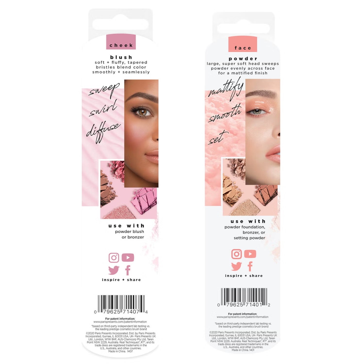 اصنعي قاعدة ناعمة باستخدام مجموعة بودرة وأحمر الخدود من Real Techniques. تعد هذه المجموعة إضافة متعددة الاستخدامات لمجموعة فرشاتك، حيث تعمل هذه الأدوات الأكثر مبيعًا مع مجموعة متنوعة من القوام المختلفة، مما يساعد على توزيع المنتج ودمجه بسهولة على البشرة لخلق اللمسة النهائية المرغوبة. تم تصميم كل فرشاة بشعيرات UltraPlush™ الاصطناعية الناعمة لدعم التطبيق السلس.