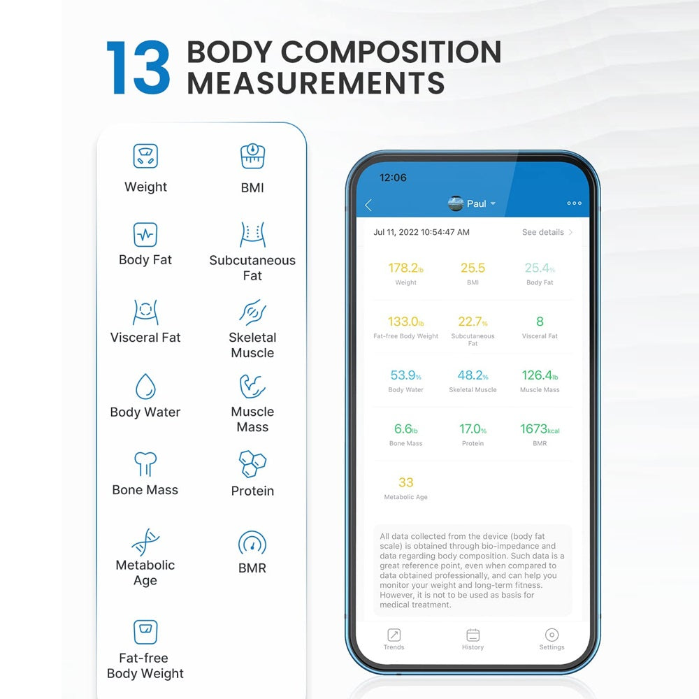 Family Weight Scale : Renpho Health app can add up to 20 users, perfect for family use. This renpho body scale allows you to track information, record data, store profile, and make a chart to visualize your trend. Baby Scale Mode recording changes and tracks the weight of babies and pets.