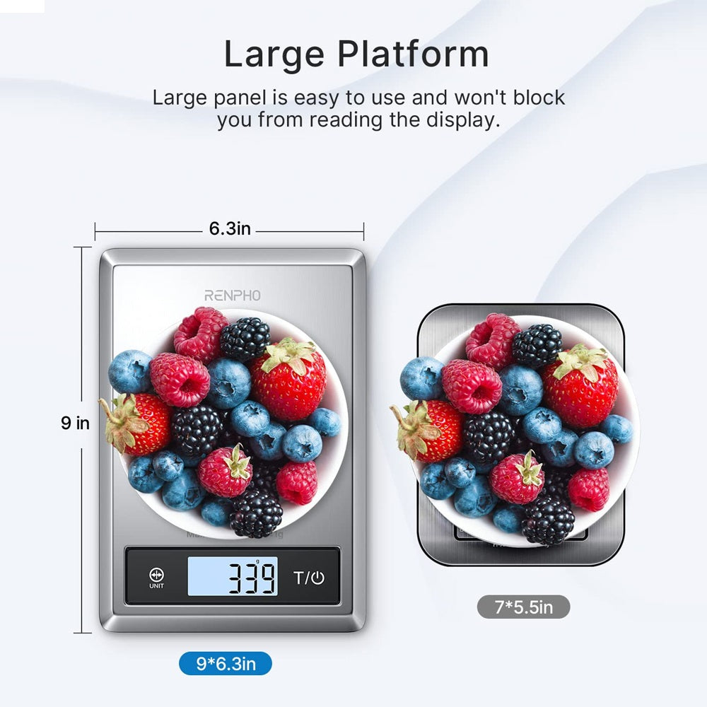 يعمل مع تطبيق متعدد الوظائف: يمكنك تشغيل مقياس الطعام بسهولة من خلال تطبيق "Gennec" / "Renpho Health" لمراقبة المدخول الغذائي وحساب السعرات الحرارية وتخزين مذكرات التغذية. يوفر التطبيق إمكانية الوصول إلى عشرات الآلاف من الأطعمة مع حقائق التغذية، بما في ذلك السعرات الحرارية والفيتامينات والبروتينات، ويمكنك أيضًا إضافة بيانات طعامك وتخصيصها حسب الحاجة.