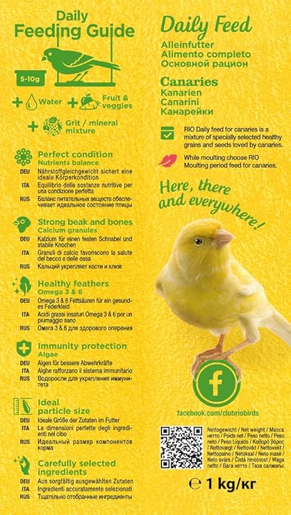 طعام الكناري من ريو هو مزيج مختار خصيصًا من الحبوب والبذور الصحية التي يحبها الكناري. تضمن مجموعة المكونات المتنوعة حصول الطيور على جميع المواد الغذائية الضرورية.