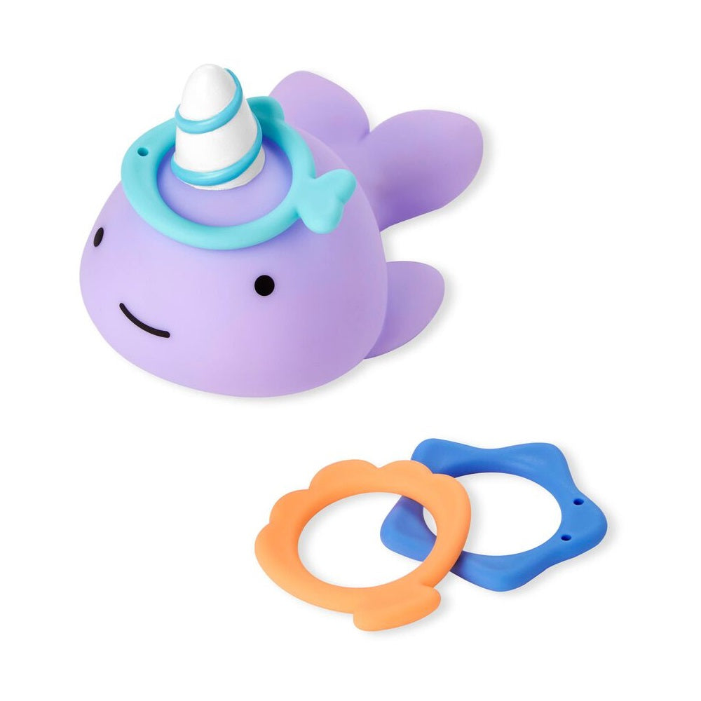صديق وقت الاستحمام هذا جاهز للعب! حوت النروال الرائع لدينا جاهز للعب لعبة الإمساك مع طفلك الصغير. ما عليك سوى رمي الحلقات على قرنه والاستمتاع بمتعة الاستحمام.