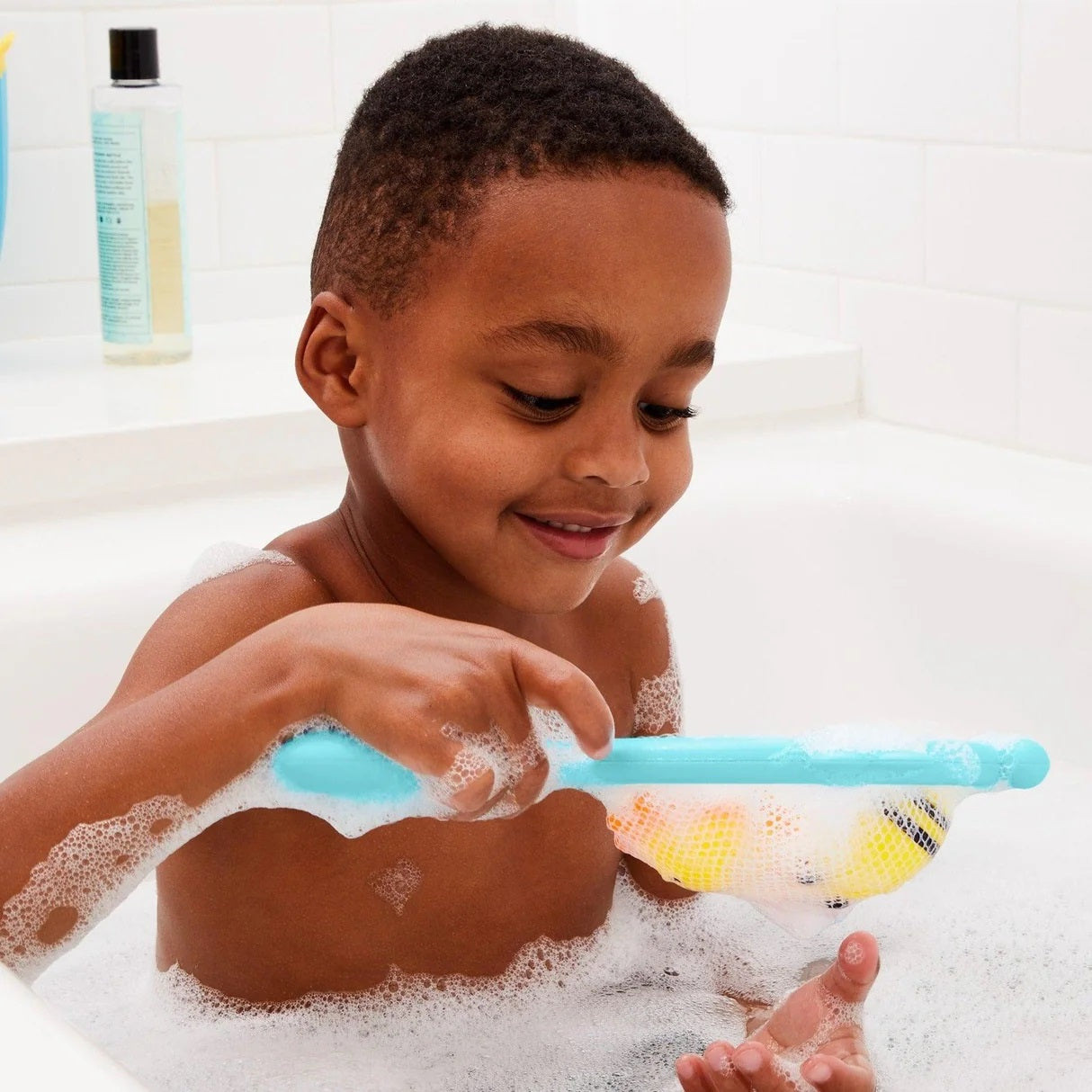 اغرف، انثر، التقط، طفو! تتضمن مجموعتنا الرائعة المكونة من 4 قطع شبكة التقاط يسهل على الأيدي الصغيرة الإمساك بها والإمساك بها، بالإضافة إلى ثلاث قاذفات رائعة لمزيد من المتعة أثناء الاستحمام - أمسكها إذا استطعت.