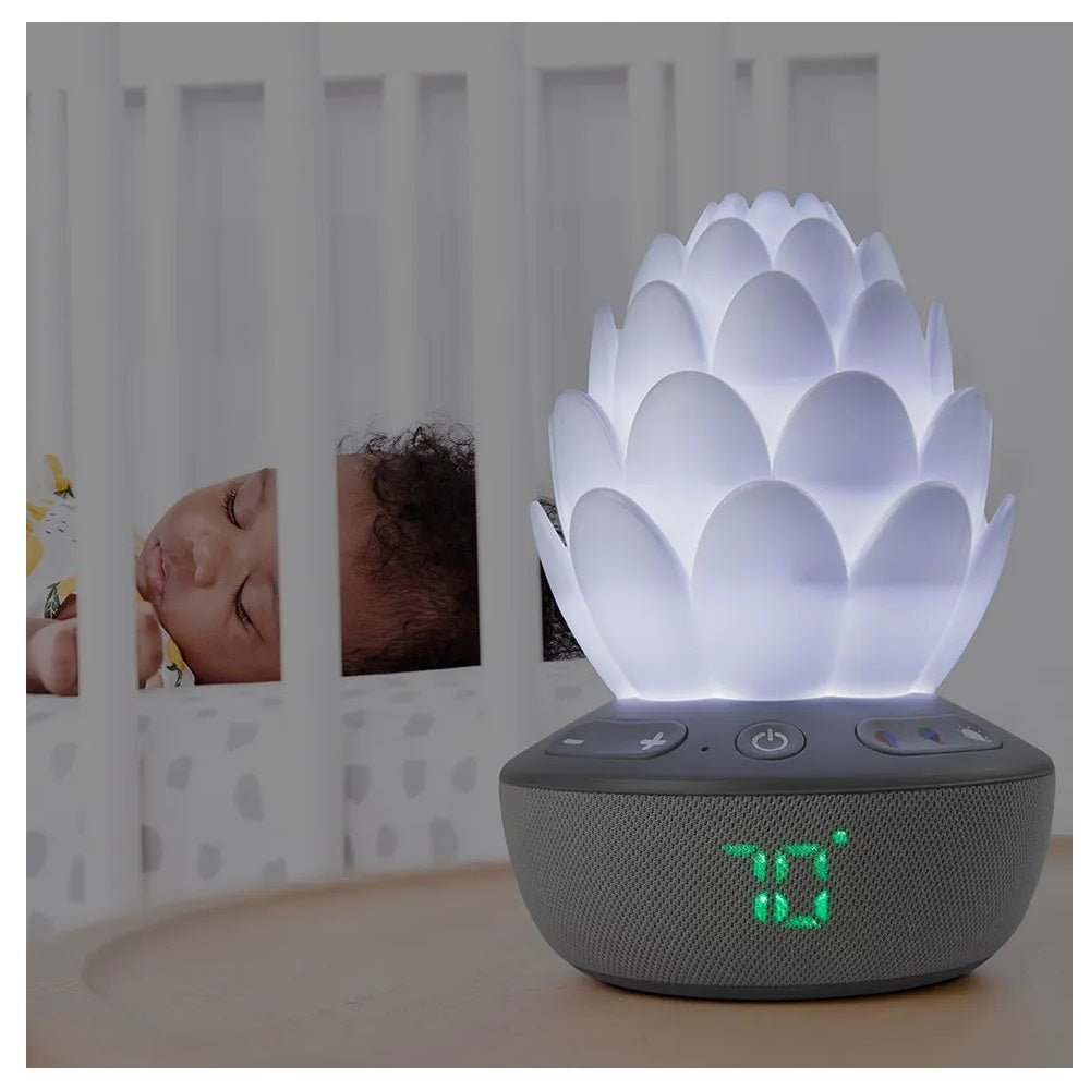 Comforting baby comes naturally with our decor-friendly botanical soother. Designed to automatically respond to baby's cries, it features eight soothing melodies and sounds plus a voice recorder for customized comfort. Even better it's also a nightlight with seven different colours plus a multi-light show mode for a calming animated glow. We even included a thermometer so you'll always know if baby's room is a comfy temperature.