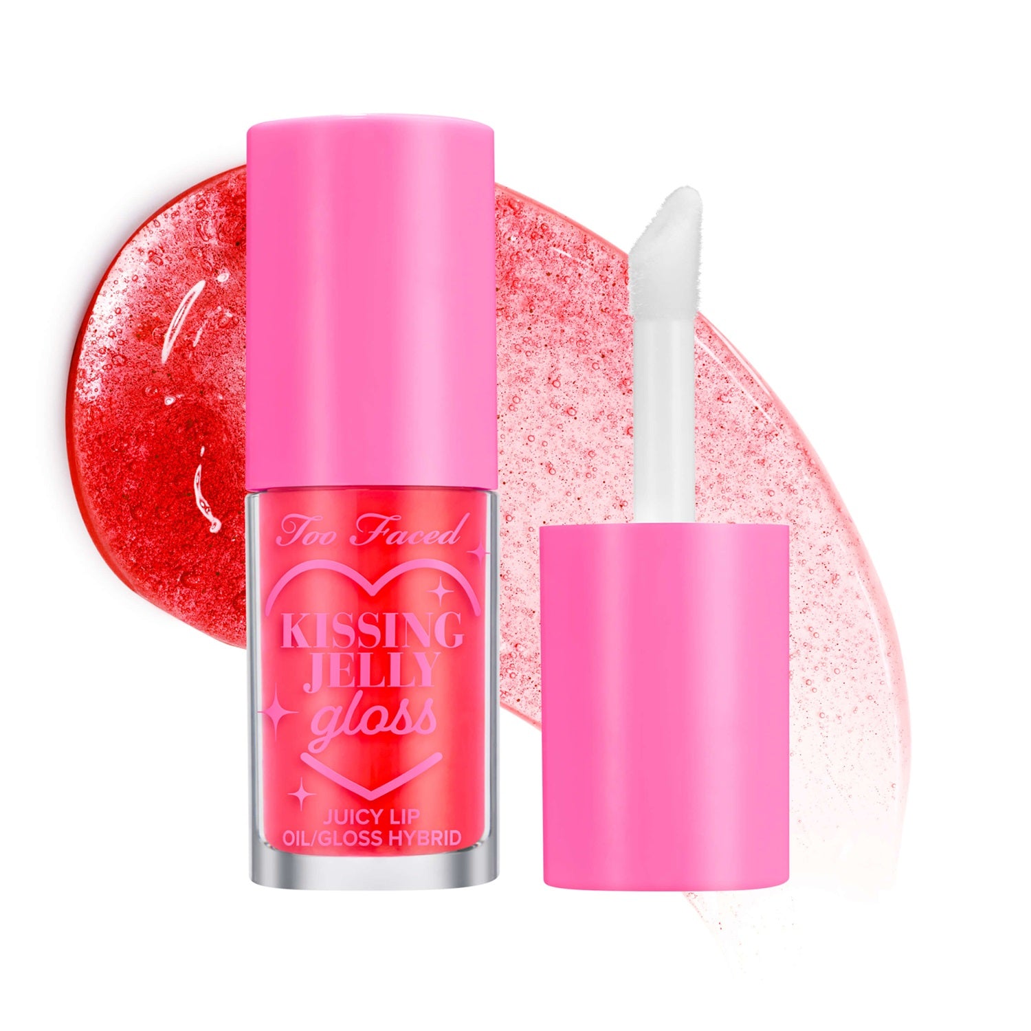 ملمع الشفاه Too Faced Kissing Jelly Ultra-Nourishing Non-Sticky Lip Oil Gloss Hybrid هو ملمع الشفاه الذي لا يمكنك العيش بدونه! تركيبة زيت الشفاه اللامعة هذه ترطب الشفاه بالزيوت الطبيعية وتترك لمسة من اللون تمنحك ترطيبًا فوريًا لزيت الشفاه مع لمعان الحلوى لملمع الشفاه.