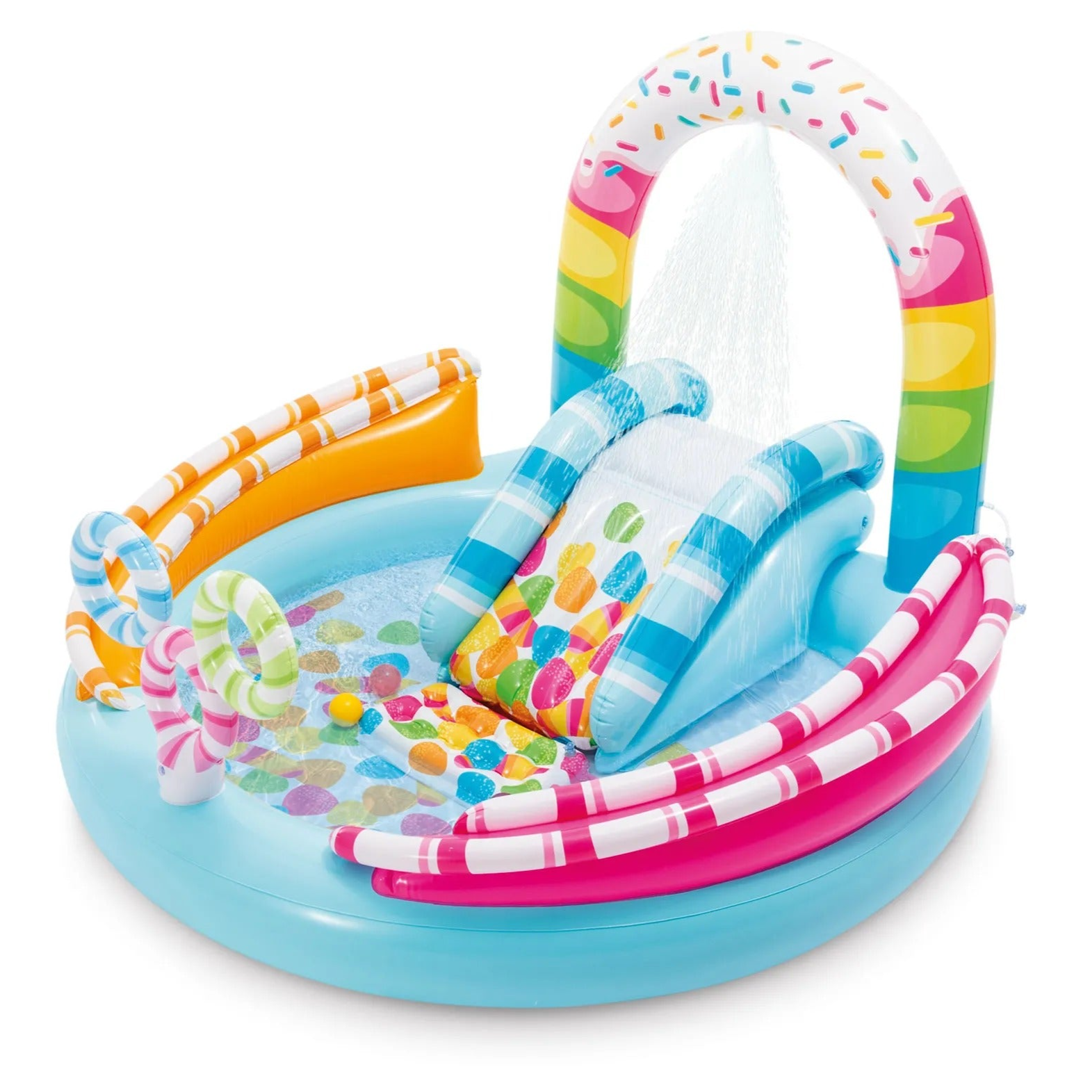 Make way for Intex's Candy Zone Play Center. The colorful playland will entertain for hours on end. The play center includes a . This 'sweet' new play center is perfect for summer fun Water sprayer attaches to the garden hose to keep kids cool in the summer.