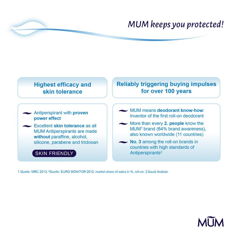 MUM Fresh Pink Rose roll-on deodorant seduces with the enchanting scent of roses. Exactly right for those who like a fine, flowery fragrance. The reliable MUM formula has been refined with exquisite fragrances that caress the senses.