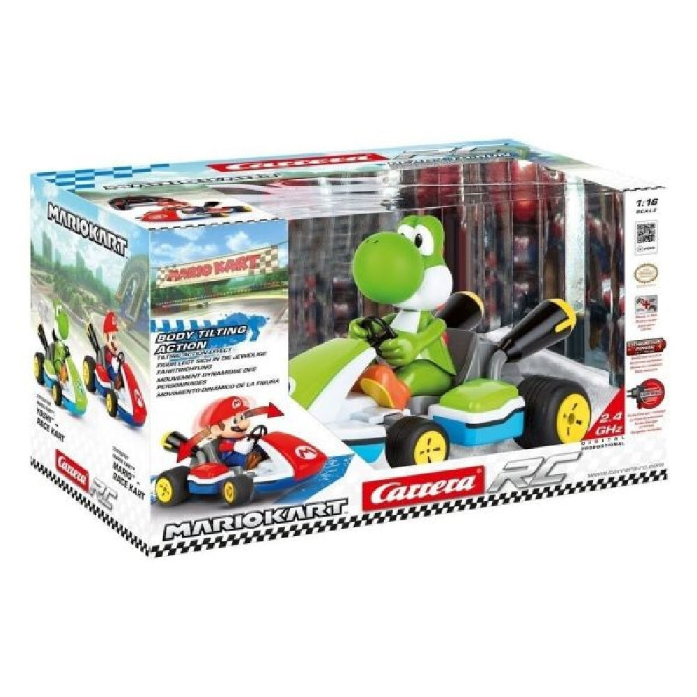 Get ready to enjoy countless hours of racing fun driving with your favorite Officially Licensed Mario Kart character behind the wheel! The 1:16 scale vehicle measures approximately 13.78-inches long and features a splash-proof water resistant body that allows you to race up to 13-mph across multiple terrains including wet, slippery surfaces. A single charge of 80-minutes with the included charger provides up to 40-minutes of drive time on each full charge leaving you with less time sitting around waiting for the battery to recharge. Turn on the sound to hear life-like racing noises while your character leans to the side as you take turns making the experience even more realistic. For more control and better handling, the vehicle features a differential gear, pneumatic tires, and a full-spring suspension. This remote control vehicle is ready to run and includes all batteries!