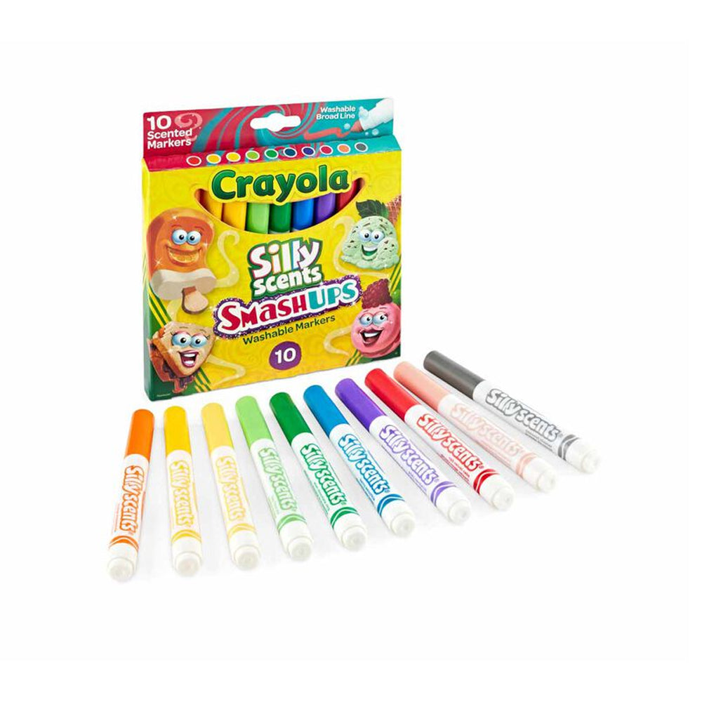 Embark on a whimsical coloring adventure with Crayola's 10 Ct Silly Scents Smash Ups, Broad Line Dual-Ended Washable Markers – a delightful set that combines vibrant colors, versatile broad lines, and playful scents! This innovative marker set offers a dual-ended design, providing young artists with a variety of options for creative expression.