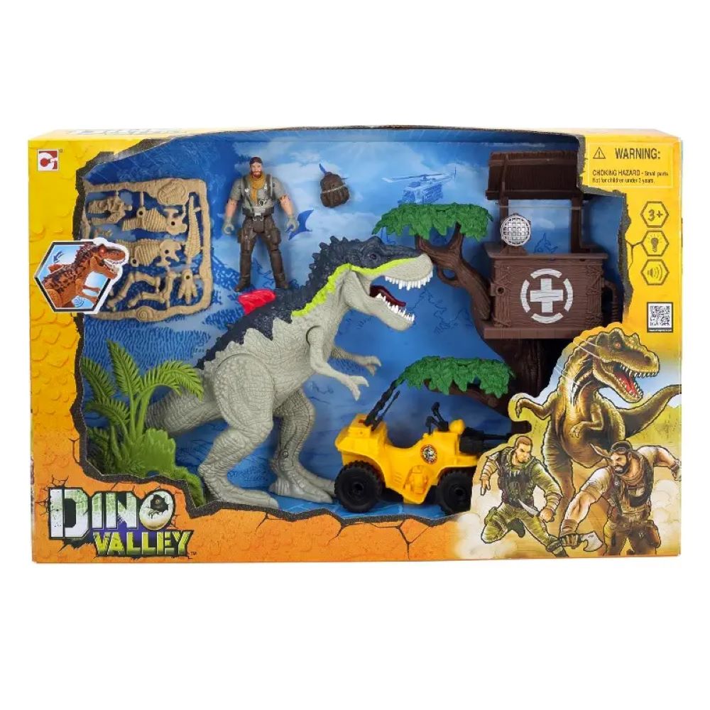Press the dinosaur's flipper to activate lights and sounds. - There are also fossil bones that can be collected to create another dinosaur. - Fits the rawhide ATV at large. - Includes 1 dino light and sound, 1 watchtower, 1 yellow ATV, 1 figure, 1 jungle green, 1 dino skeleton accessory, battery. - Made of high quality materials. - Suitable age group: 3+ and above.