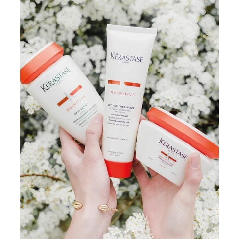 Nutritive masquintense for fine hair is specially designed not to weigh on fine hair, allowing to restore vitality and softness to dry and fragile hair.