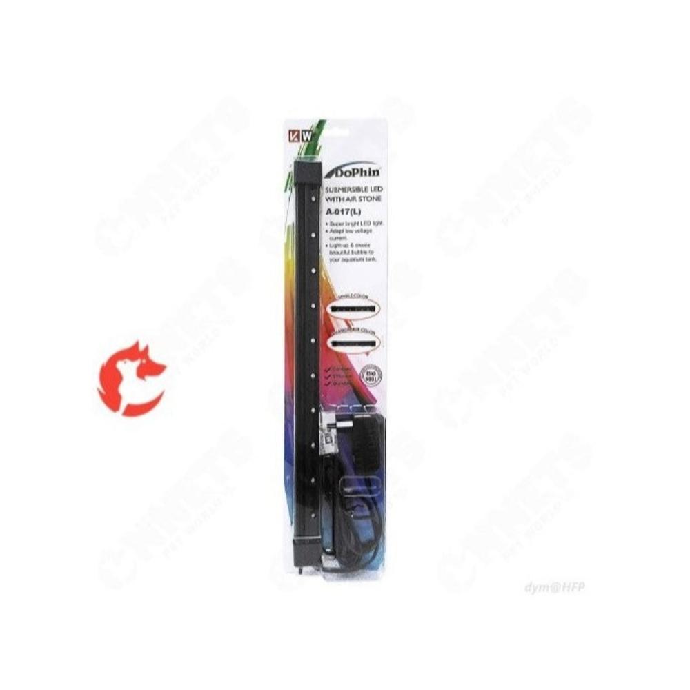 Experience a brighter and more vibrant underwater world with the KW Zone Dolphin LED with Airstone. Measuring 46cm in length, this LED light not only illuminates your aquarium, but also provides oxygen and a relaxing bubble effect. Enjoy a healthier and more visually stunning aquatic environment with this innovative product.