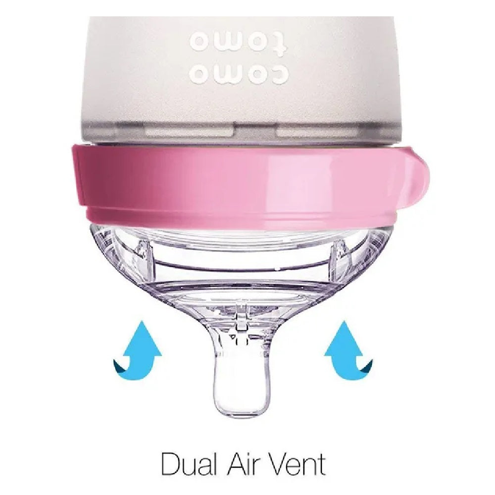 Comotomo Natural Feel Baby Feeding Bottle - Pink & White, 250 ml