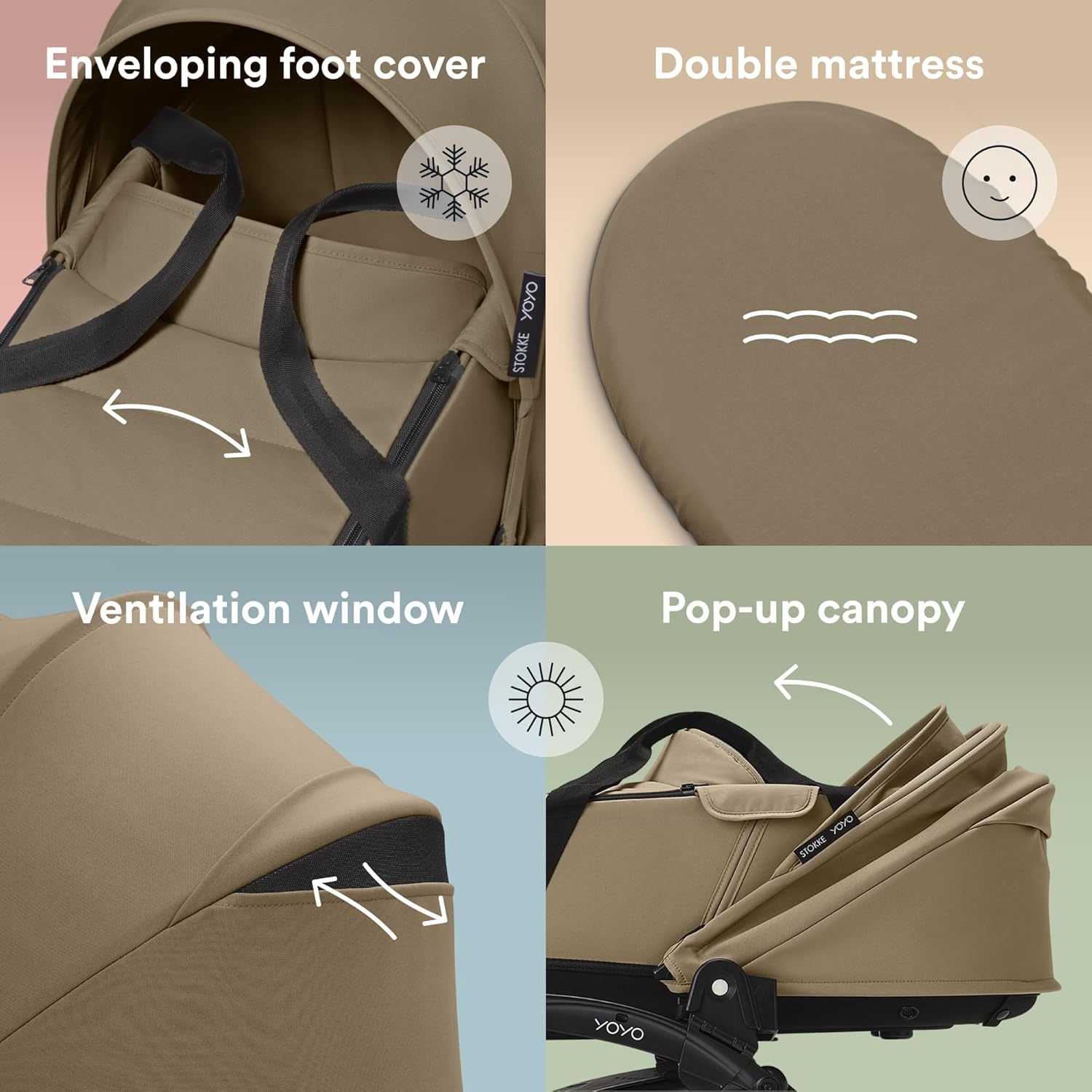 Whether you're navigating narrow spaces, hopping in a cab, or flying across the world, the Yoyo3 fits where others don't - including most overhead airplane compartments. Crafted with premium materials and a sleek design, this complete stroller grows with your child while keeping comfort, safety, and style in focus.
