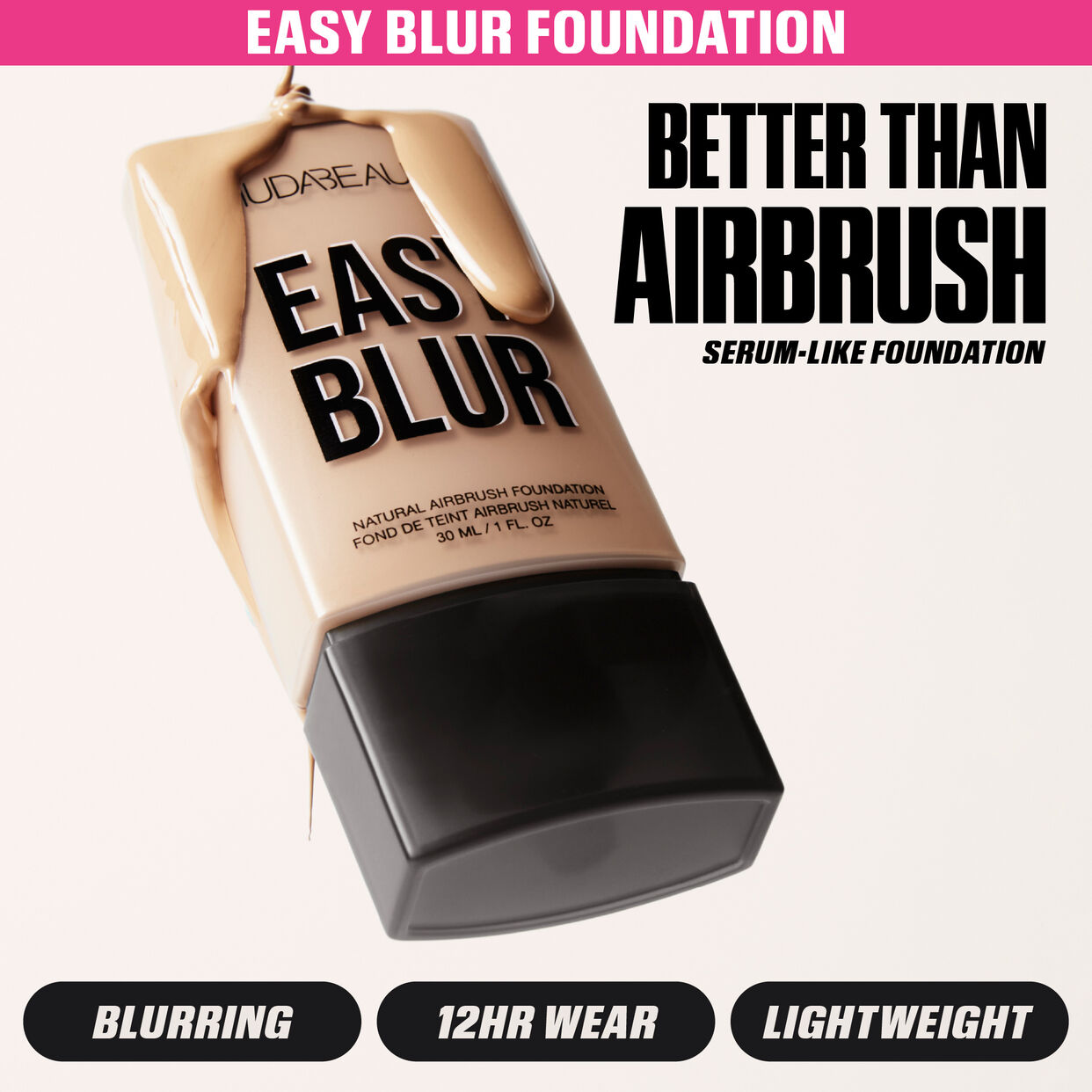 Easy Blur Foundation (full-size): THIS IS NOT A FILTER! Our Easy Blur Foundation is an ultra-blurring real-life filter foundation, formulated with niacinamide to smooth skin and pore-blurring silica for a natural airbrushed finish. With medium-to-buildable coverage for foolproof, seamless, easy application, the Easy Blur Foundation comes in 29 foundation shades.