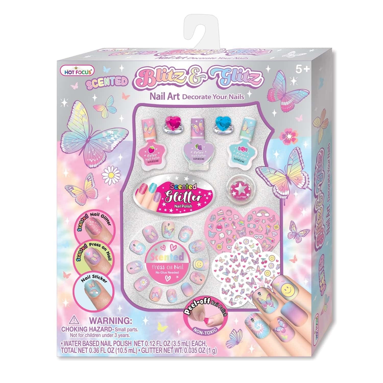 - Kids can express their creativity with the Hot Focus Blitz & Glitz Nail Art Set