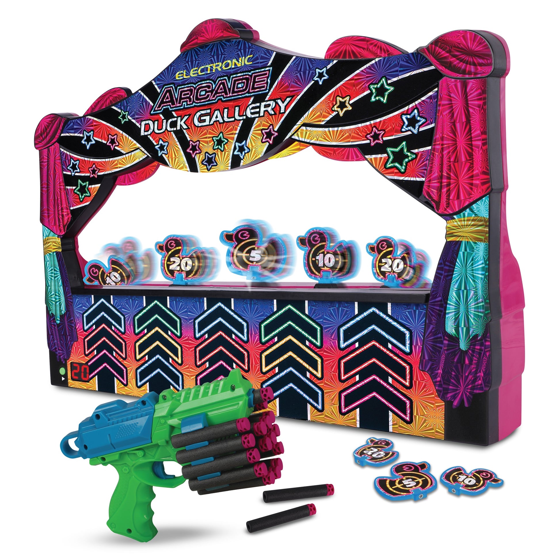 Once you're done, collect the ducks and tally up your score. Replace the ducks on the belt and you're ready to play again—everyone can take turns trying to set a new record! This game is perfect for family fun and competitive play. Requires 3 x AA batteries (not included).