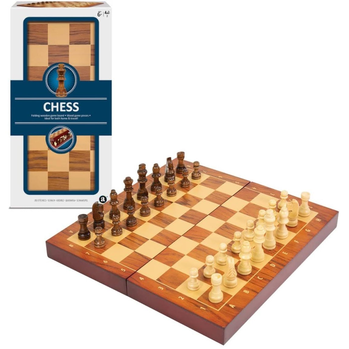 Classic wooden chess game with a folding game board and 32 wooden figures. An ideal choice for travel, the tablet also functions as a storage.