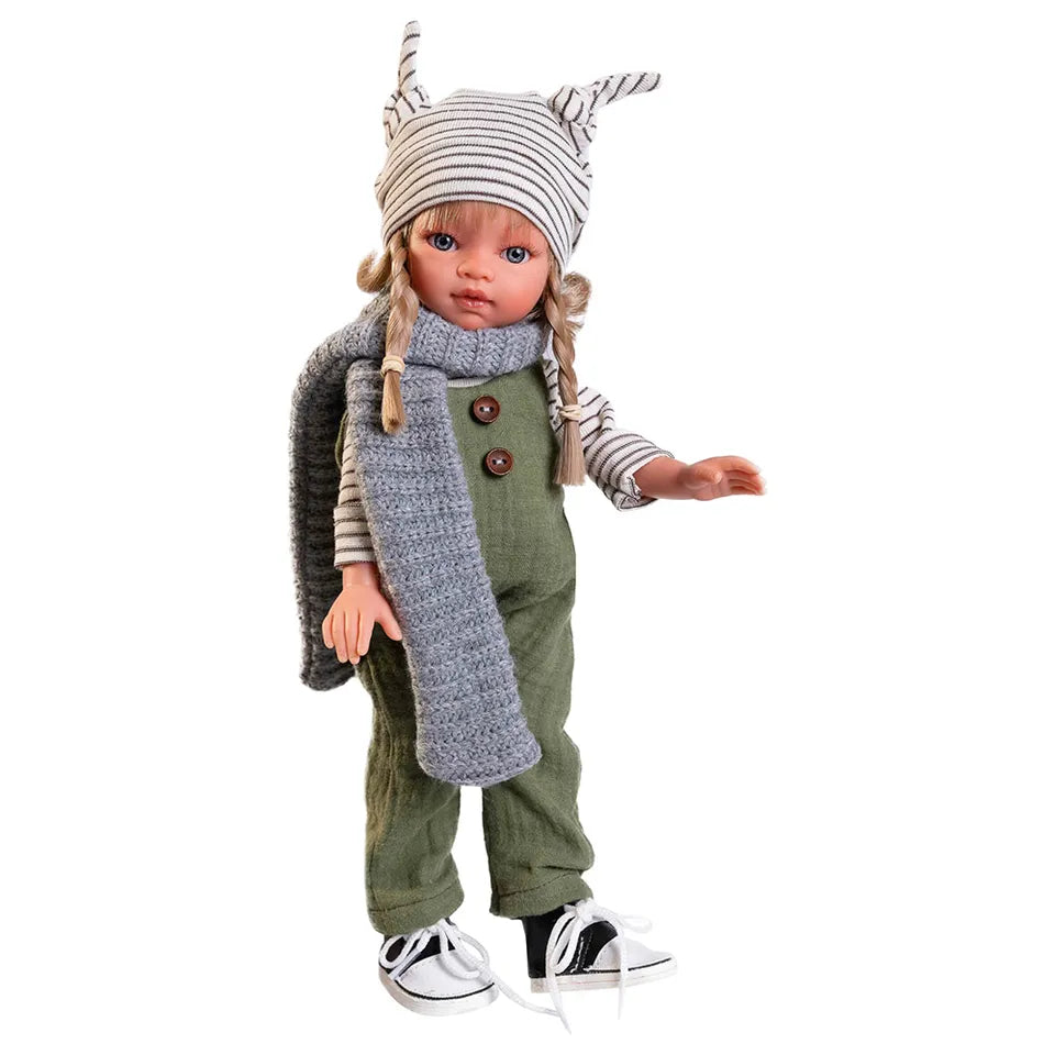 Meet Emily Boho, the modern and stylish mannequin doll from Antonio Juan! Emily is always on trend, with a chic and daring fashion sense. Her outfit features a stylish combination of dungarees, a fashionable scarf, and a cute hat—perfect for any occasion. Made with organic cotton fabrics, Emily's clothes are eco-friendly, ensuring that no chemicals are used in her production. Standing at 33 cm tall and weighing just 335 g, Emily is lightweight and easy to pose, making her perfect for young fashion enthusiasts. She can adopt different positions, offering endless possibilities for creative play. With her charming little face and trendy attire, Emily is ready to explore the world with you!