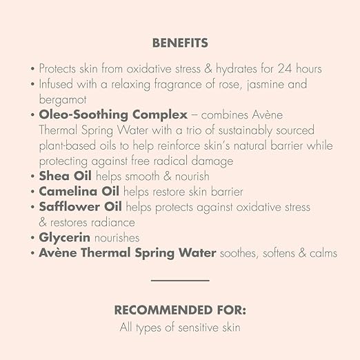 Deeply nourishes skin for lasting comfort. Its creamy texture and soothing scent envelop your skin in a cocoon of softness. Rich in a [list of soothing oils] complex, this balm is perfect for dry, sensitive skin. Provides a velvety and moist feeling for up to 24 hours.