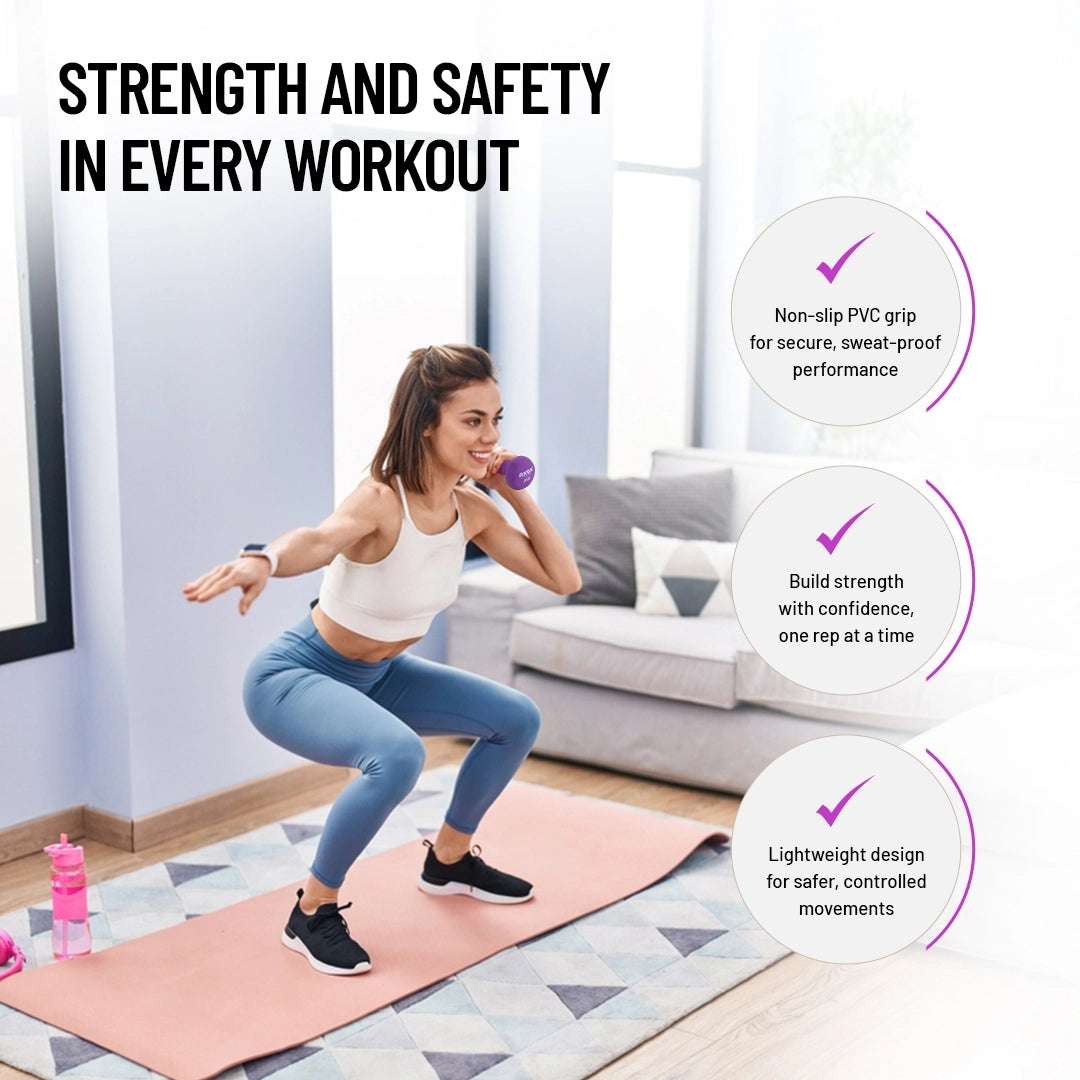 Upgrade your workouts with these durable neoprene dumbbell pairs, available in 1kg to 5kg weights. Each set features color-coded design for easy identification and an anti-slip PVC grip for safe, comfortable use. Perfect for toning, resistance training, and full-body workouts at home or in the gym.