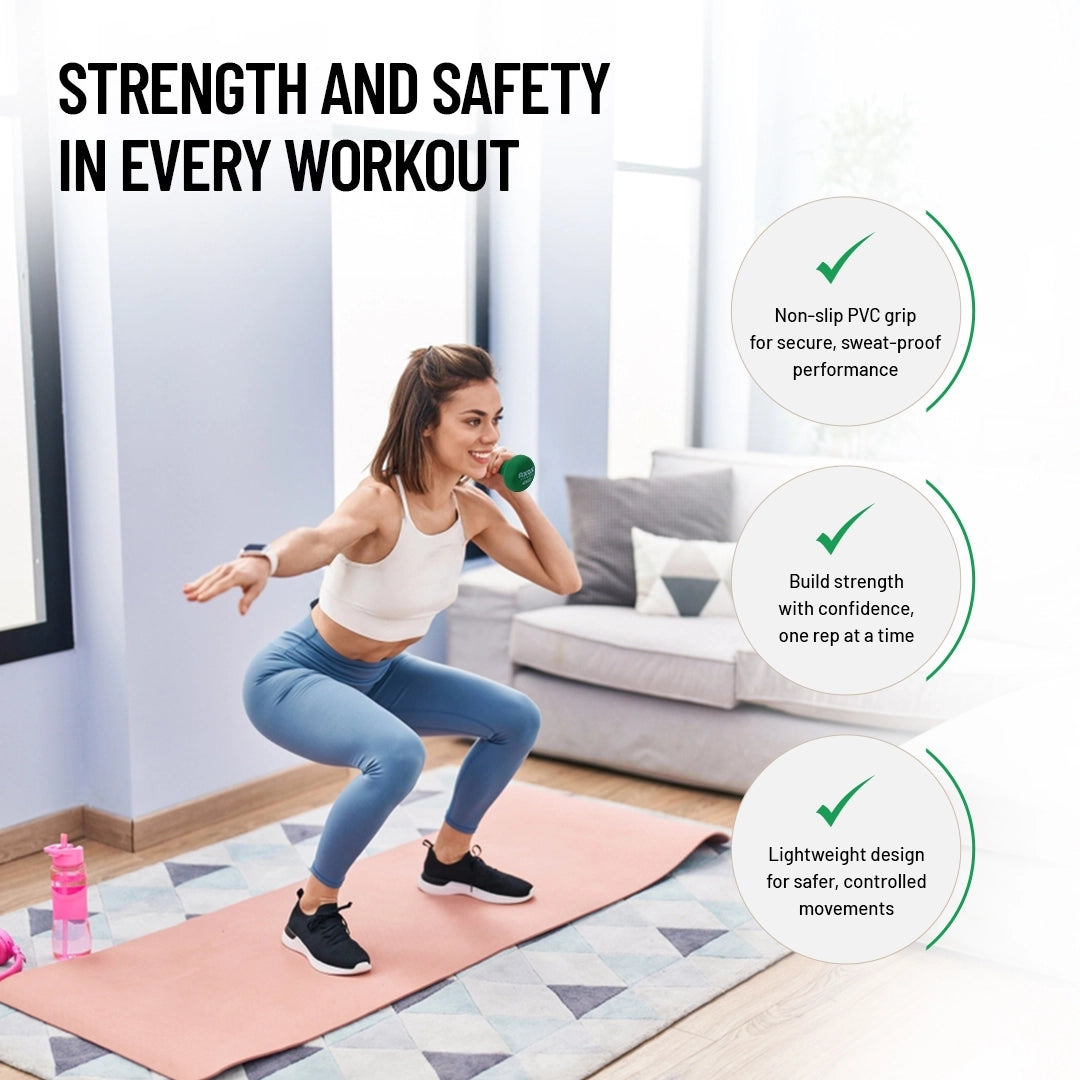 Upgrade your workouts with these durable neoprene dumbbell pairs, available in 1kg to 5kg weights. Each set features color-coded design for easy identification and an anti-slip PVC grip for safe, comfortable use. Perfect for toning, resistance training, and full-body workouts at home or in the gym.