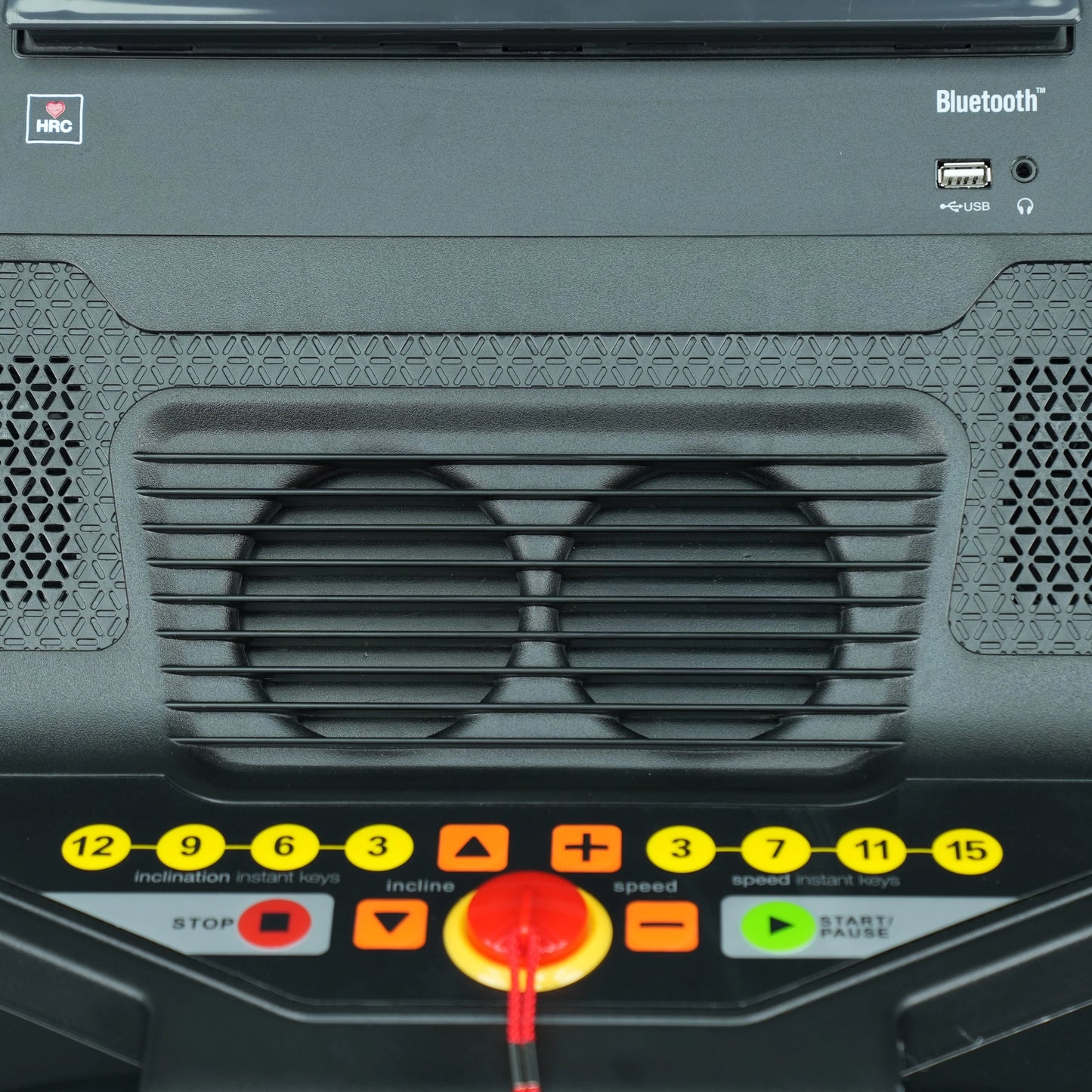 With handle pulse sensors, instant incline/speed buttons, an iPad holder, and built-in speakers, your run is tailored to comfort and ease. The treadmill also includes a headphone port and Bluetooth headphone support for uninterrupted training sessions.