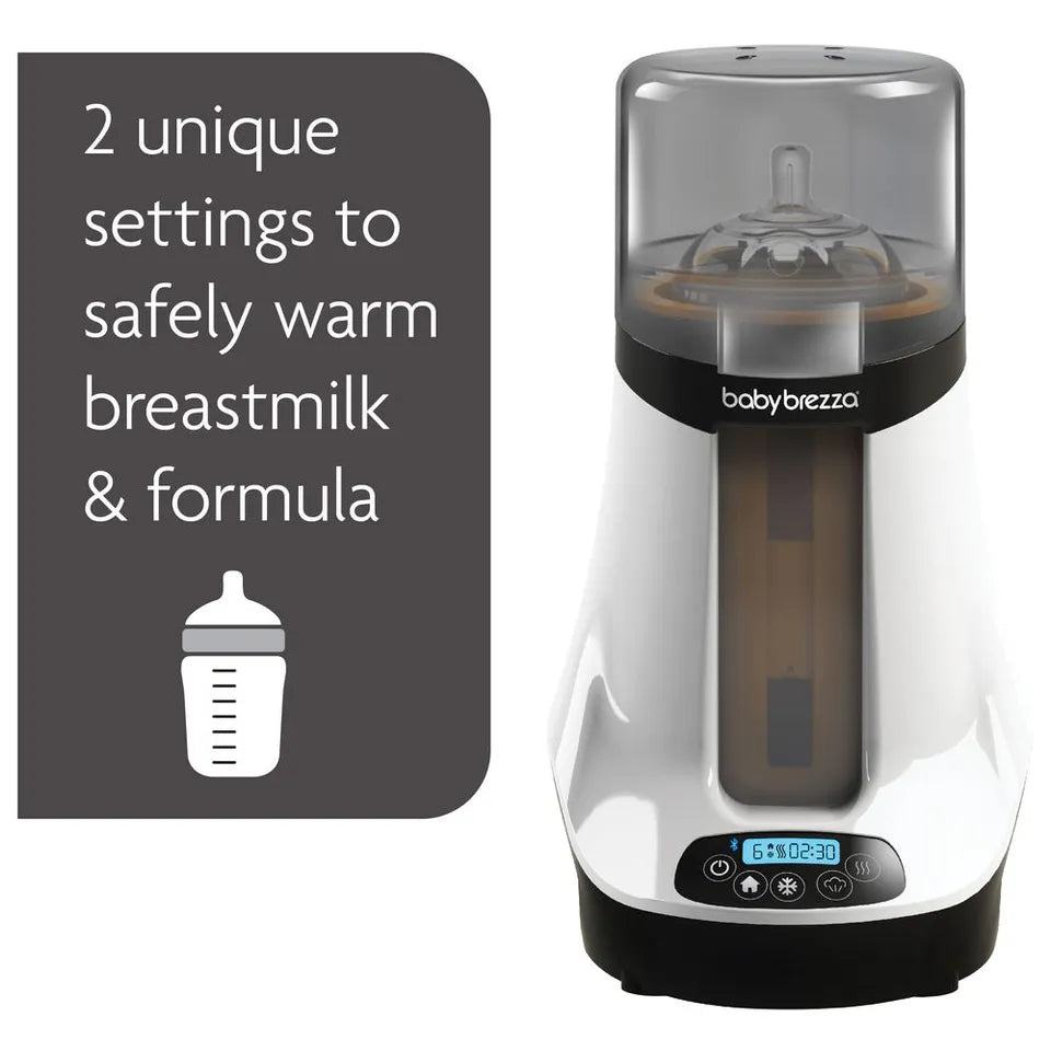 The Baby Brezza Safe + Smart Bottle Warmer is the only warmer with smart Bluetooth control and two warming modes to safely warm breastmilk and formula. It features a Warm Water Bath to warm or defrost breastmilk, which protects its nutrients, and Steam Heat to rapidly warm formula or baby food. Plus, it offers Bluetooth control so you can operate the warmer and receive alerts on your phone. BPA-FREE; 1-year limited warranty.