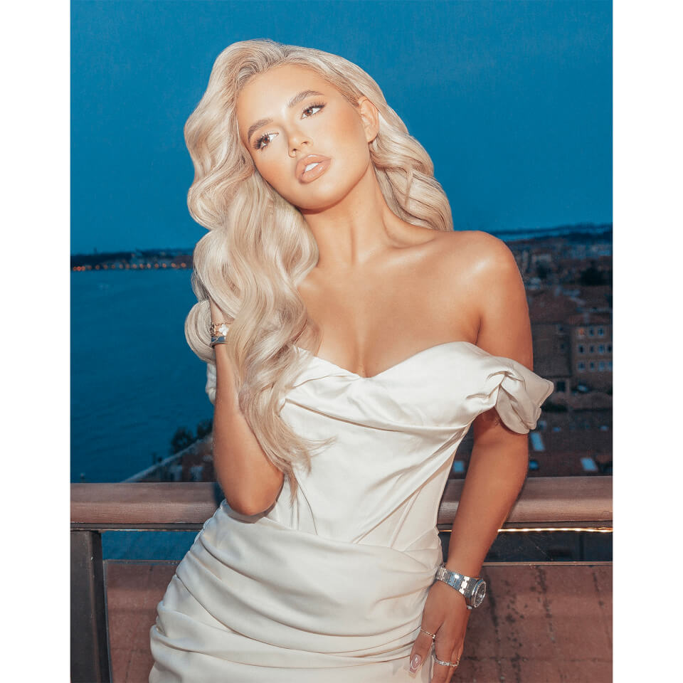 This kit comes with a professional styler, 10 pin curling clips, a vegan soft bristle brush, travel case, and heat protecting glove. The curling clips are the key to Molly-Mae’s styling success. You simply use the clips to hold fresh curls in place, letting them cool down, and set – lasting for longer.
