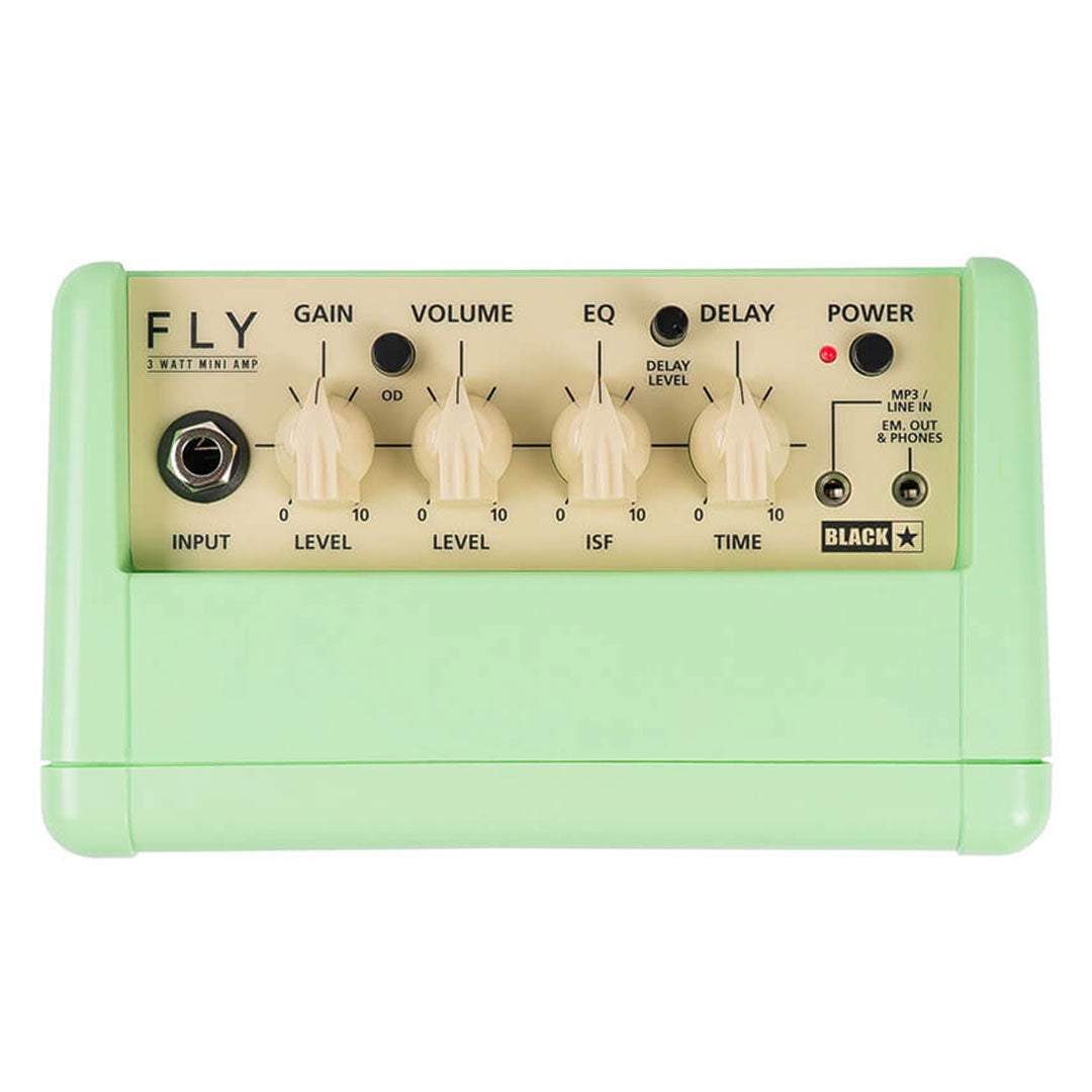 Surf's up! Twang away with this Surf Green Blackstar Fly 3 Guitar Mini Amp! Don't forget to tinker with its built-in Delay effect to mimic that springy reverb sound of the surf rock era. , , The Blackstar Fly 3 Mini Guitar Amp is arguably one of the best guitar micro amps in the business! Unlike other mini amps that sound like tinny old radios, the Fly3 sports a 3" full range speaker that delivers a high-fidelity sound; you'd swear this amp was bigger! Blackstar's patented ISF control knob is also the Fly 3's secret sauce; quickly set your guitar tone anywhere from bright and spanky to midrange-boosted British crunch. The OD switch lets you go from sparkly clean to rich overdrive. And to spice things up, there is a built-in Delay effect with Time control to give you some nice echo or reverb-like effects. The headphone/line output also features cabinet simulation, so you get a real amp feel even when playing with headphones on, or hook it up with a P.A. system to get a full-blown sound! , , The Blackstar Fly 3 Vintage can be powered by AA batteries, so you can play just about anywhere; or you can use it with the Blackstar PSU-1 Power Supply Adapter (sold separately) for prolonged practice and jam sessions