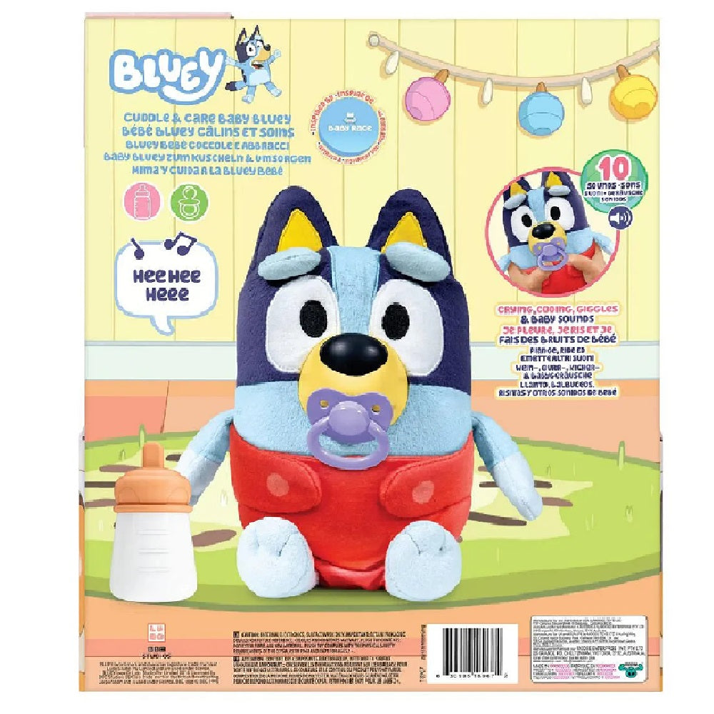 • Features 10 baby sounds – squeeze Bluey’s belly to hear cooing, giggling, and crying