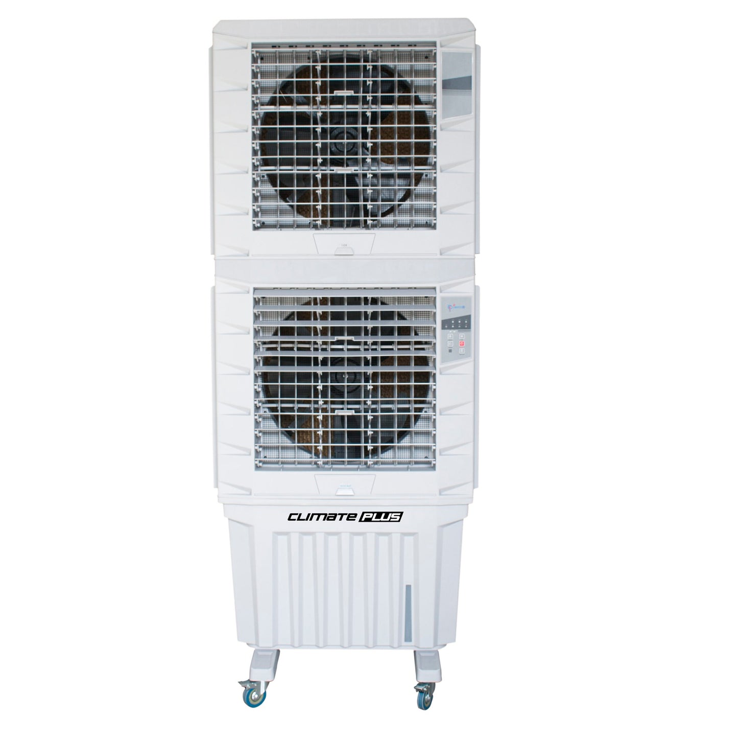 The same rugged dust-proof CM10000 comes in twin double Decker up-size. Same foot print air cooler with double cooling power.