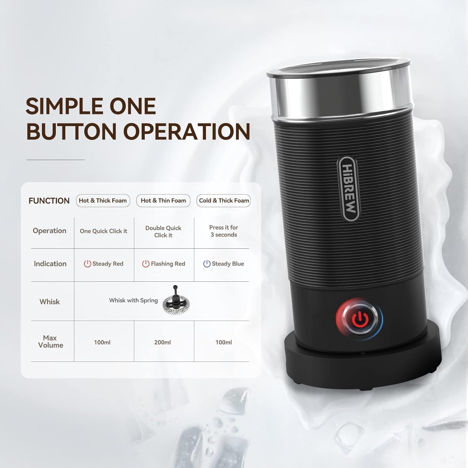 3-in-1 Compatible: The automatic milk frother can be used for cold frothing, hot frothing or heating milk. It is recommended to use whole milk with a fat content ?3.0% to make milk froth. The milk foaming capacity is 150ml, and the milk heating capacity is 300ml. (Note: Excessive amount will cause overflow)