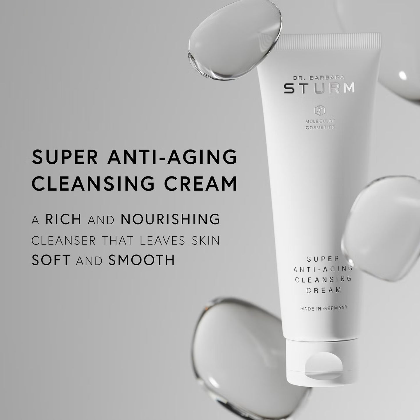Dubbed super for a reason, Dr. Barbara Sturm Super Anti-Aging Cleansing Cream cossets complexions with a rich texture that melts away make up, pollution and impurities, while respecting the unique needs of mature and dry skin types.