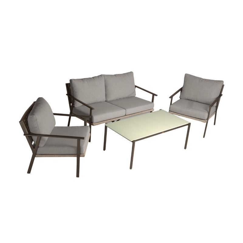 4 Seater Sofa Aluminum Frame covered in Rope Fiber with Rectangle Coffee Table