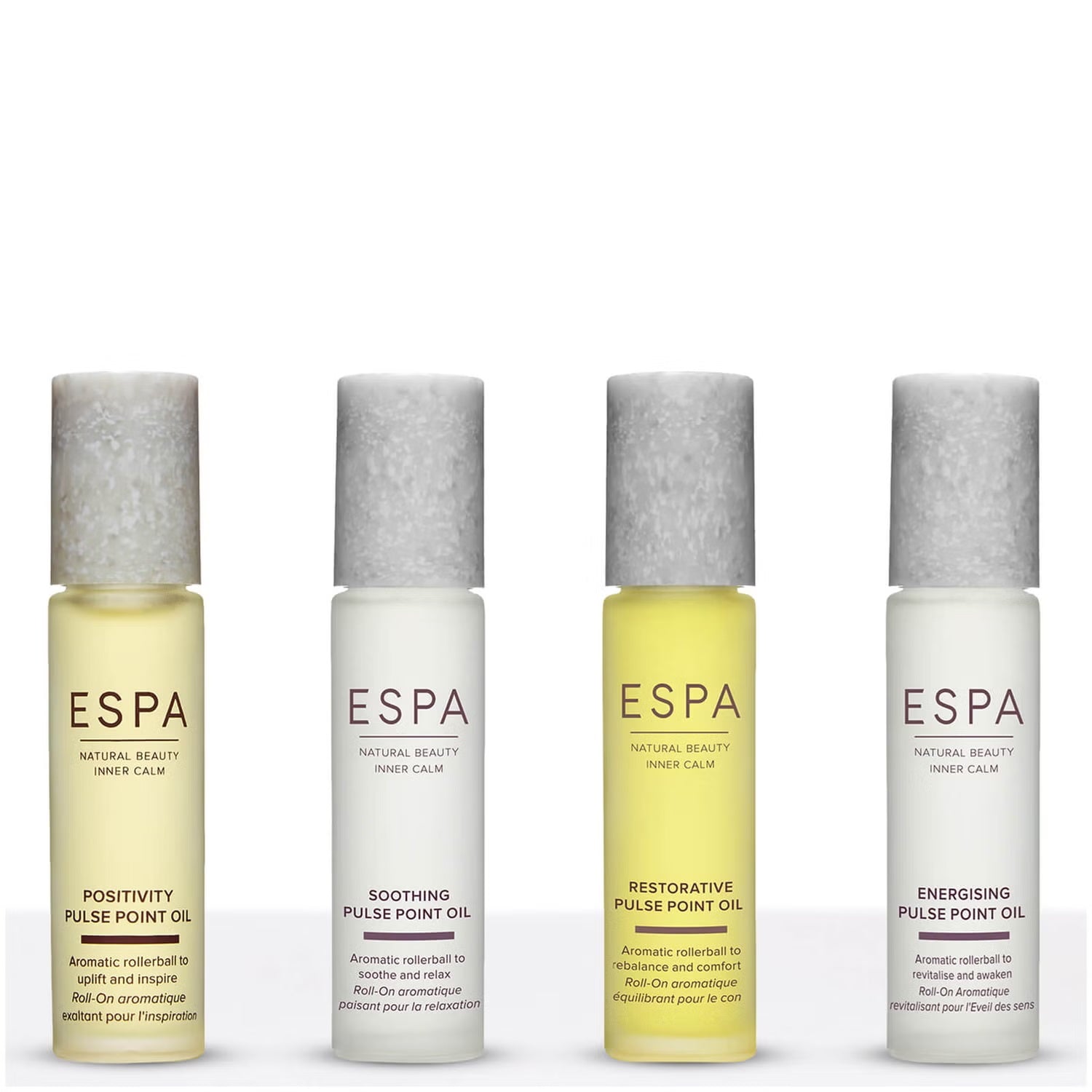 The ESPA Oil Collection includes four essential oils designed to be applied to the pulse points. Each oil blend is in a handy portable format, allowing you to top up throughout the day.