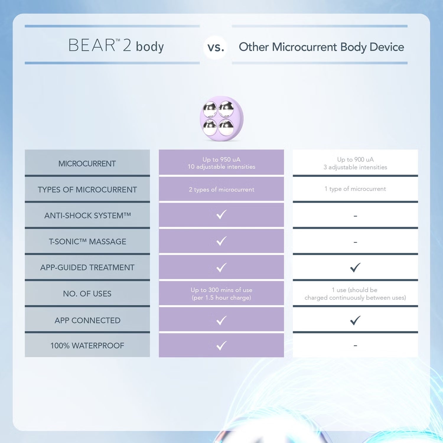 A safe and painless alternative to surgery, the BEAR™ 2 Body offers 10 adjustable micro-current intensities for visible results in just 1 week.