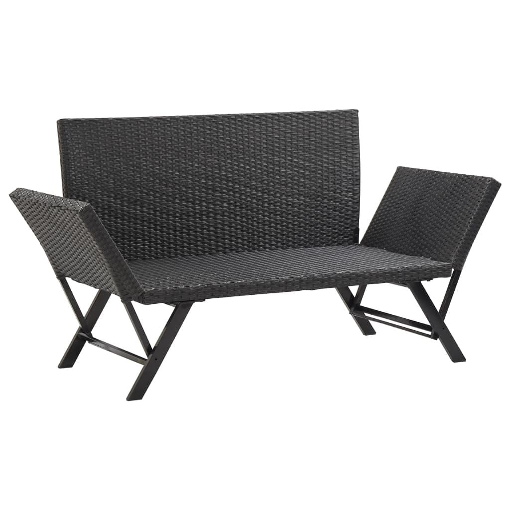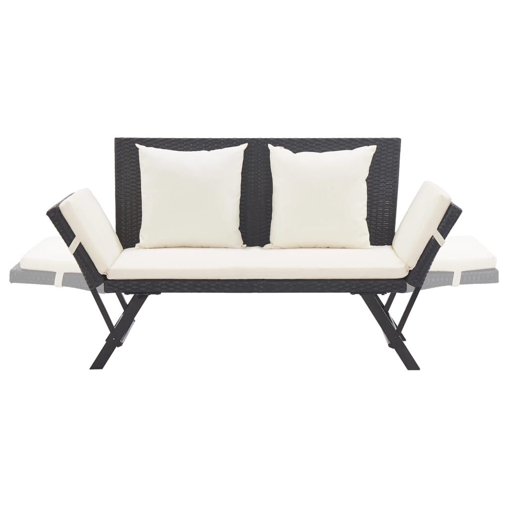 This versatile outdoor sun bed/garden bench adds style and functionality to your garden or patio. Crafted from weather-resistant PE rattan, it is easy to clean and durable for daily use. The sturdy powder-coated steel frame ensures stability. The bench can be quickly converted into a day bed with adjustable sides. The thickly padded cushion offers ultimate comfort and support, with a removable cover for easy washing. It is recommended to cover the bench during harsh weather to extend its lifespan.